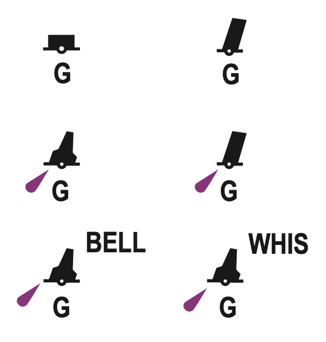 ![]() G: Green R: Red Whis: Whistle Goutte mauve: bouée munie d’un feux. | Trois bandes horizontales, en partant du sommet: Vert, Rouge et Vert. | Un cylindre (d’apparence carrée). | ![]() – Feux vert – FL (2+ 1): un deux éclats suivi d’un éclat. – Se répète aux 6 ou aux 10 secondes. | Si on remonte le courant et qu’on veut rester dans le chenal principal, on la laisse sur notre bâbord. Si on remonte le courant et qu’on veut prendre le chenal secondaire, on la laisse sur notre tribord. |