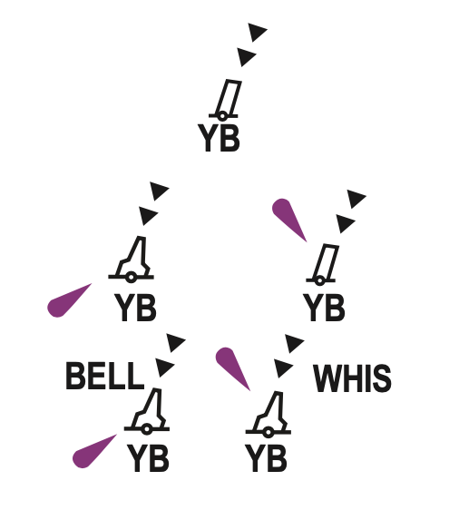 ![]() B: Black Y: Yellow Whis: Whistle Goutte mauve: bouée munie d’un feux. | Trois bandes horizontales, en partant du haut: jaune, noir et jaune. | Deux cônes superposés, celui du dessus étant inversé, si bien que les sommets se touchent. (Apparence de sablier) | ![]() – Blanche – 9 éclats très rapides aux 10 secondes ou 9 éclats rapides aux 15 secondes. | On doit aller vers l’ouest. |