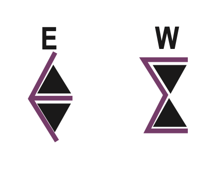 Règle générale, les gens ont des difficultés à distinguer les bouées cardinales est et ouest. On peut remarquer que la forme des cônes de ces bouées forment un E et un W sur le côté. C’est un truc commode pour les distinguer. Si on peut tracer un E, c’est une bouée vers l’est. Si on peut tracer un W de côté, c’est une bouée vers l’ouest.