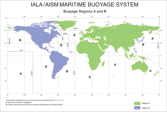 Les bouées ont toutes la même signification partout dans le monde… à une seule exception. Dans le système international « A », les bouées latérales (et les bouées de bifurcation) ont leurs couleurs inversées du système international « B ». Cela inclut la couleur de la charpente, mais aussi la couleur des feux. Le reste, notamment le symbole au sommet, demeure identique dans les deux systèmes.