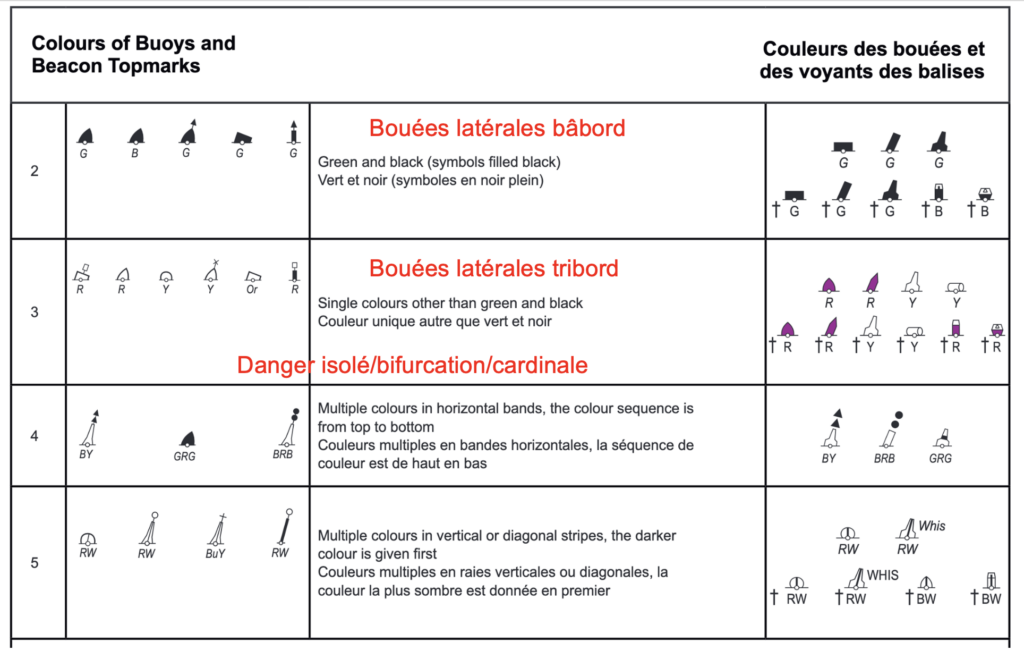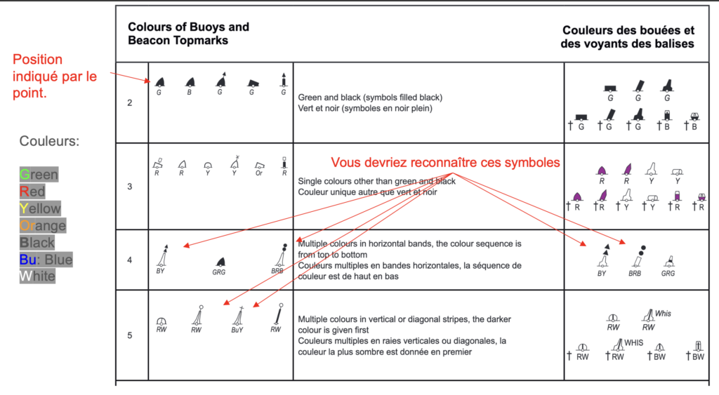 Comprendre ce que signifient chaque bouée n’est pas l’objet de ce texte. Il est préférable de se référer au texte « Décoder et comprendre les bouées » pour bien comprendre leur sens.