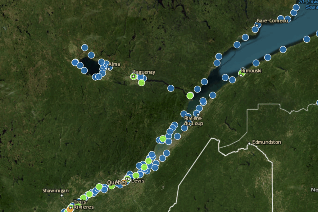 La première étape consiste à centrer l’application sur le port qui nous intéresse. À droite, l’image est centrée sur Saint-Jean-Port-Joli.