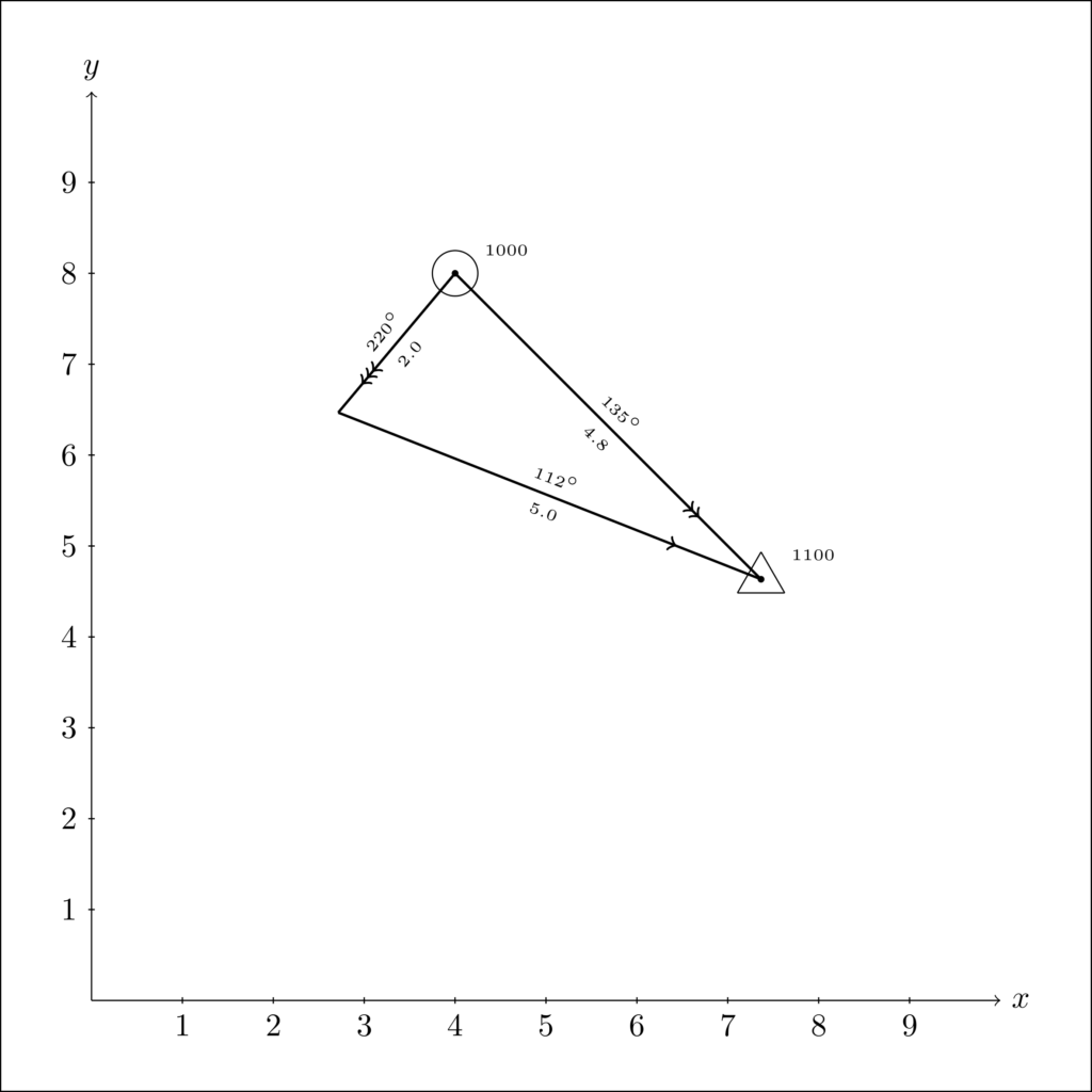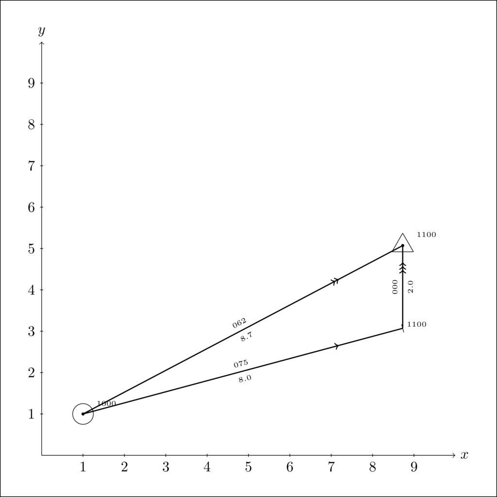 figure.print_file('example-2.png', dpi=500)The code yields the Figure below. Note that despite having the current vector start at the point (1, 1), the program moves the vector to the end of the course, so as to fit the standard drawing conventions.