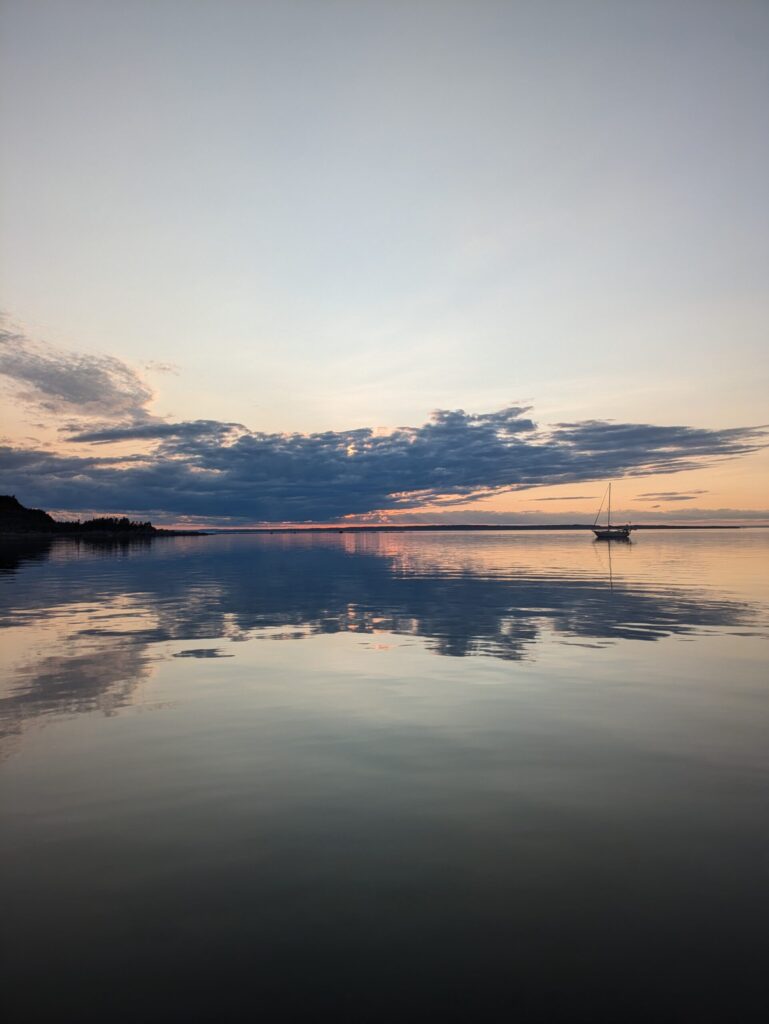 Comment from Pier du Sud: in my opinion, one of the most beautiful anchorages on the river. It’s isolated because it’s right in the middle of the river, but very well protected by the Ile aux Lièvres right next to it. For a boat making 5.0 knots like Jean-du-Sud, it’s an ideal stopover between Île-aux-Coudres (or St-Jean-Port-Joli) and Tadoussac.