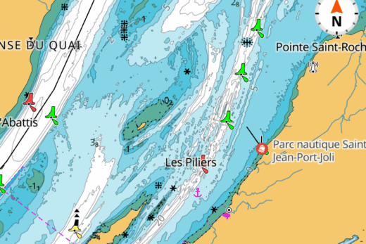 This characteristic is therefore an inherent danger in navigation: zooming in on a region of the chart may show a given water depth through a contour line, but this depth is the result of a calculation drawn from the stored data… and not the actual depth. So beware of excessive zooming: although the chart is always sharply drawn, it doesn’t necessarily reflect accurate information.