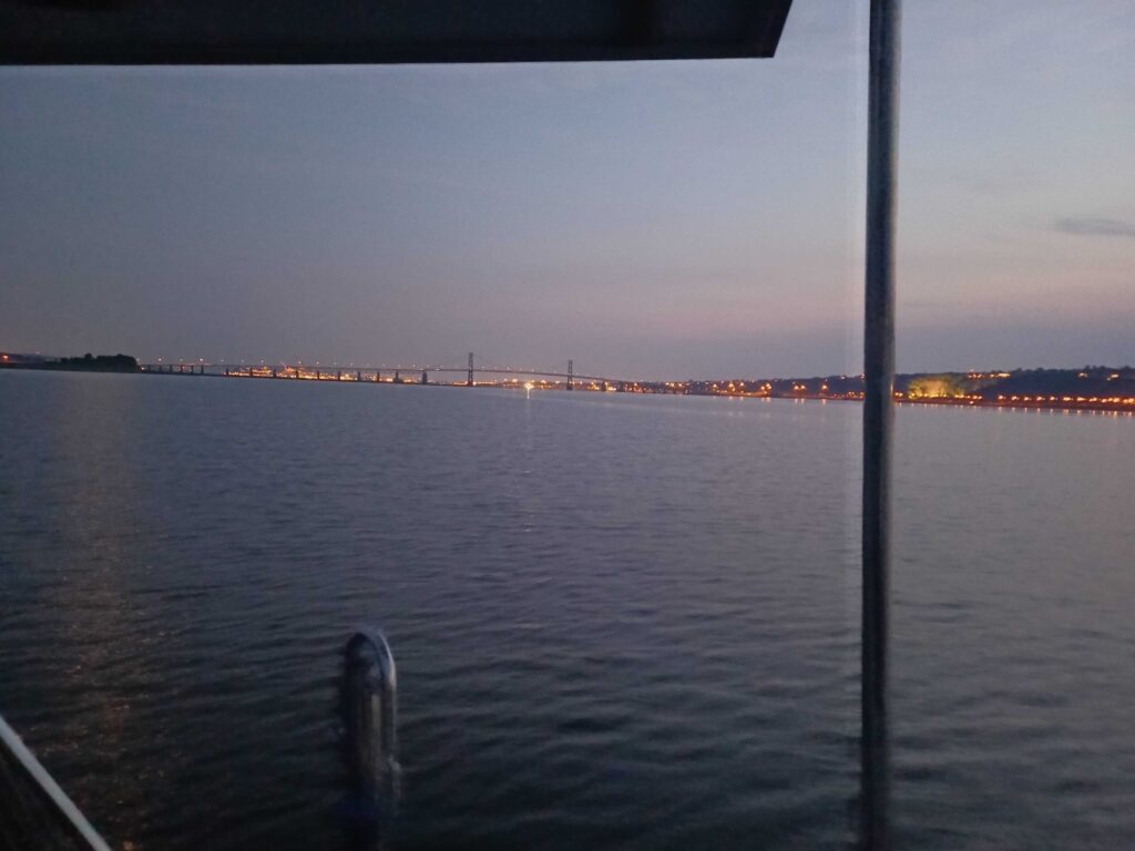 J’écris ce billet au mouillage, avec une connexion Starlink alimentée par les batteries au lithium récemment installées. Le mouillage, au nord de l’île d’Orléans, est bien protégé des vents habituels du sud-ouest. Le Saint-Laurent est presque plat et offre une brise de mer. Compte tenu des 29 degrés (Celsius), la nuit n’est pas mauvaise !