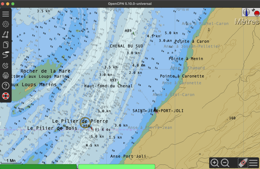 Une fois les cartes achetées et installées, on peut alors les visualiser dans OpenCPN. L’image en début de texte montre un extrait de la carte 1233.